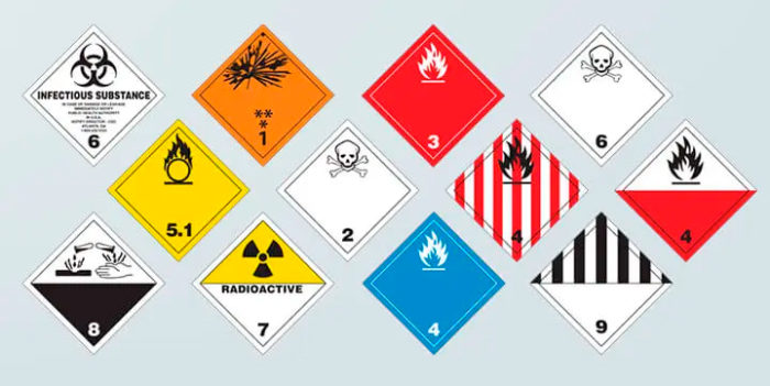 - Clase 6, Sustancias tóxicas e infecciosas: pesticidas, productos sanitarios, materiales clínicos contaminados.